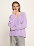 Dieser V-Ausschnitt-Pullover verbindet Komfort mit zeitlosem Design. Die hochwertige Mischung aus Alpakawolle und Merinowolle bietet eine luxuriöse Haptik und optimale Wärmeisolation ohne Gewicht. Die bewusst verkürzte Silhouette mit tiefem V-Ausschnitt und überschnittenen Schultern schafft moderne Proportionen, die sowohl zu klassischen Jeans als auch zu fließenden Röcken passen. Der lockere Sitz ermöglicht vielseitiges Layering und garantiert den ganzen Tag über Tragekomfort. Ein essentieller Basics-Pullover für stilvolle, entspannte Looks mit hohem Wohlfühlfaktor.